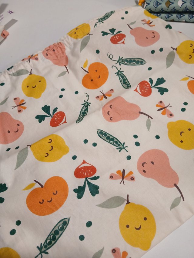 tissu extérieur enduit - tissu intérieur toile alimentaire - dimension : 42 x34 cm