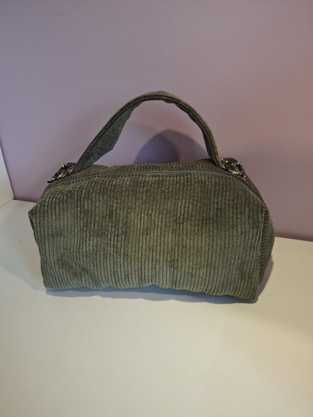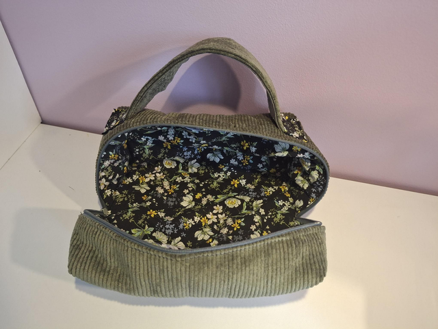 Trousse vanity tissu côtelé vert kabi double coton fleuri