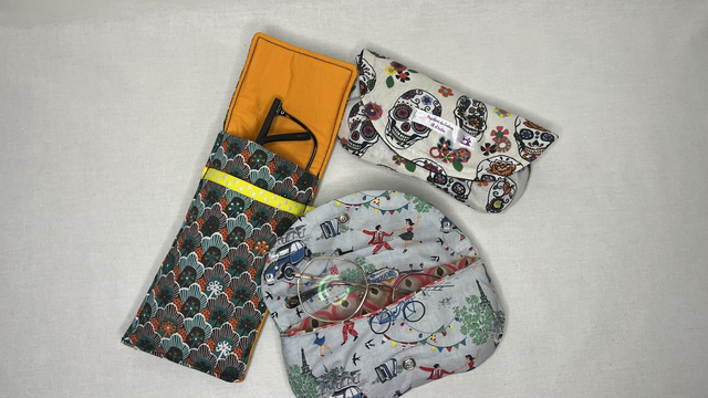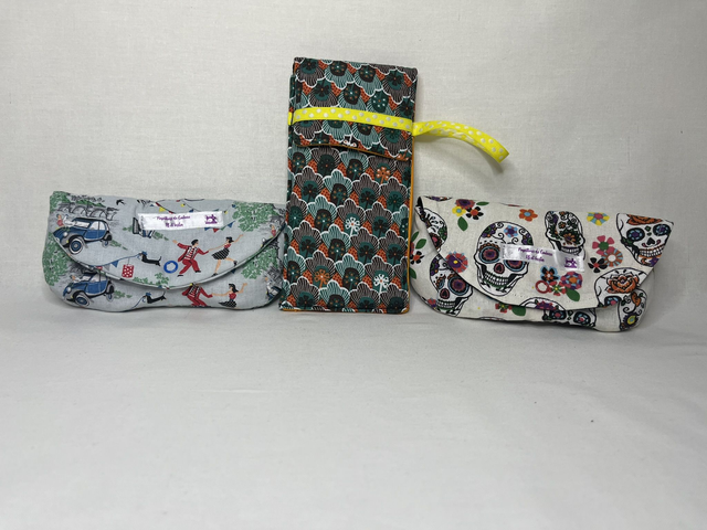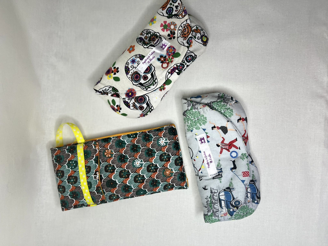 coton doublé coton avec ouate ou mousse - horizontal : fermeture pression 18 x9 - vertical : fermeture par passant 18x9 - 10 € l'unité