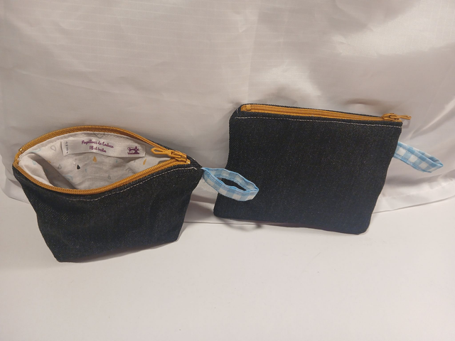 jean bleu marine doublé coton dimension 10x10 cm fermeture zip